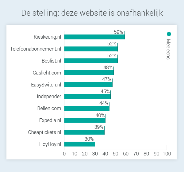 Onderzoeksbureau Vostradamos onderzocht recent hoe we in Nederland aankijken tegen vergelijkingssites. Vergelijkers van verzekeringen en andere financiële diensten scoren daarbij  slechter dan gemiddeld. Vooral op het gebied van onafhankelijkheid doen ze het slechter dan meer algemene vergelijkers als Kieskeurig.nl en Beslist.nl.